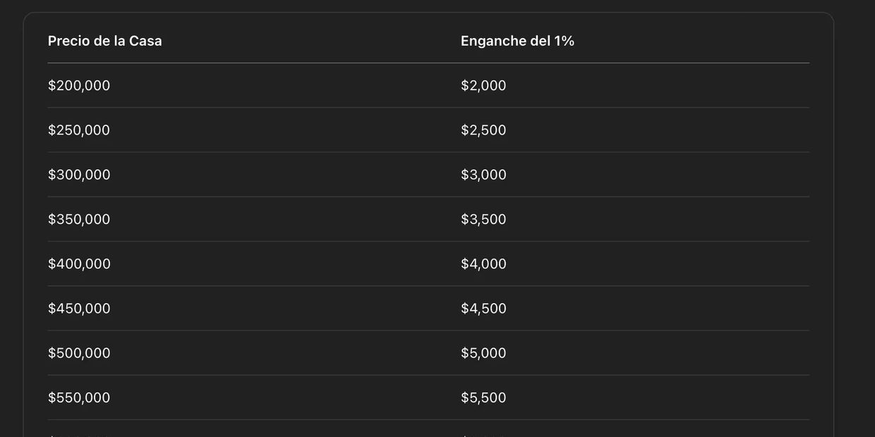 A través de este programa especial, los compradores que califiquen pueden adquirir una casa aportando únicamente el 1% del precio de compra como enganche. Además, el programa incluye: